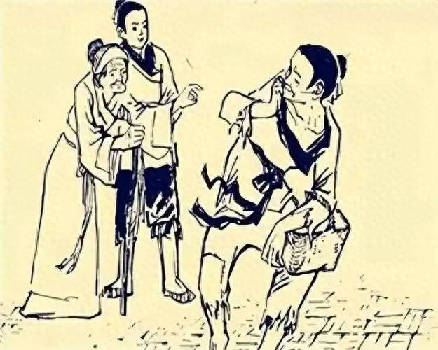 陈文远撑着油纸伞从私塾回来,远远看见自家大门前蜷缩着一个黑影。走近了才看清,是个衣衫褴褛的老乞丐,左腿扭曲变形,脸上布满皱纹,正抱着个酒葫芦往嘴里灌。
